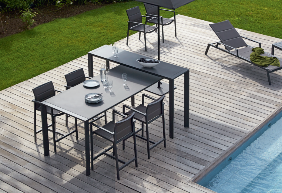Diphano garden furniture High Dining table with 8mm thick tempered glass top.