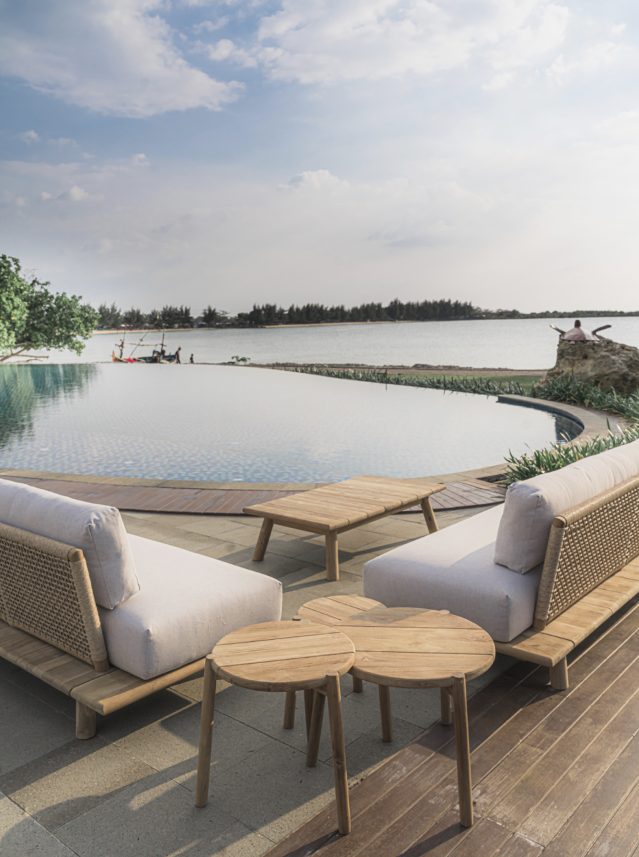 Executed in teak premium wood with a Viro backrest.