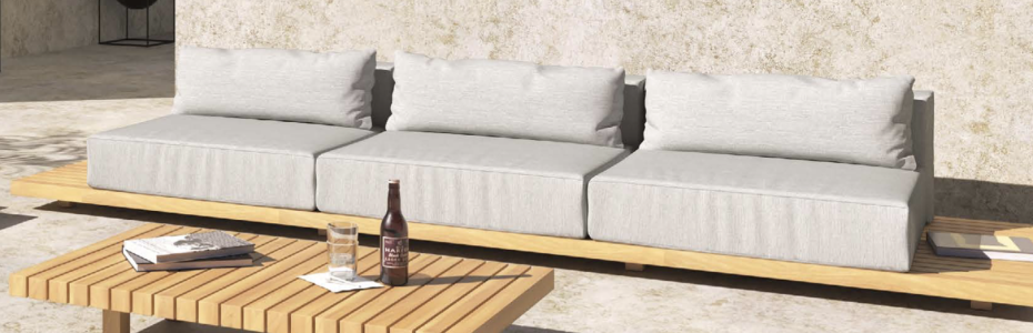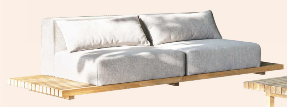 Modern Outdoor sofa Air with comfy quick dry foam cushions and design teak frame on foot