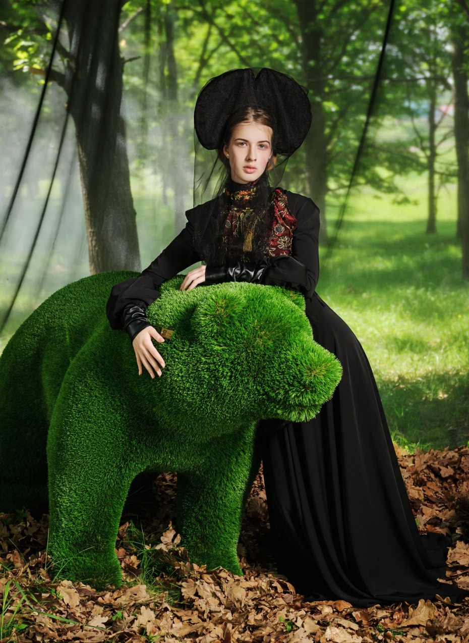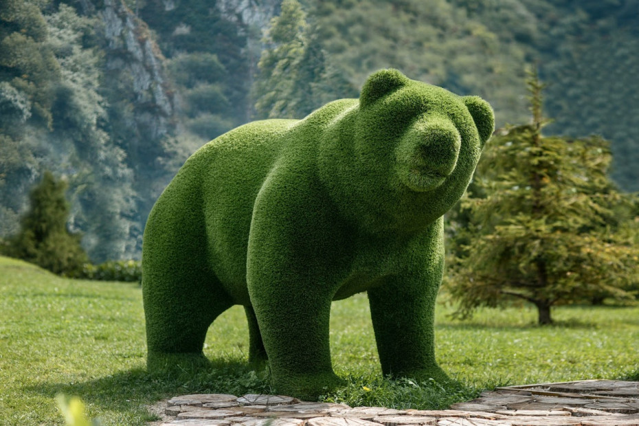 Artistic zoo statues made of artificial grass