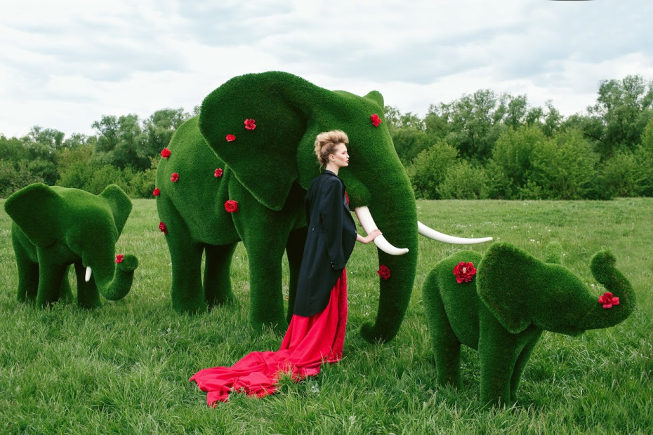 Artificial grass Elephants Topiary garden statues