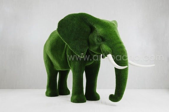 The artificial grass elephants are available in 3 sizes of garden statues