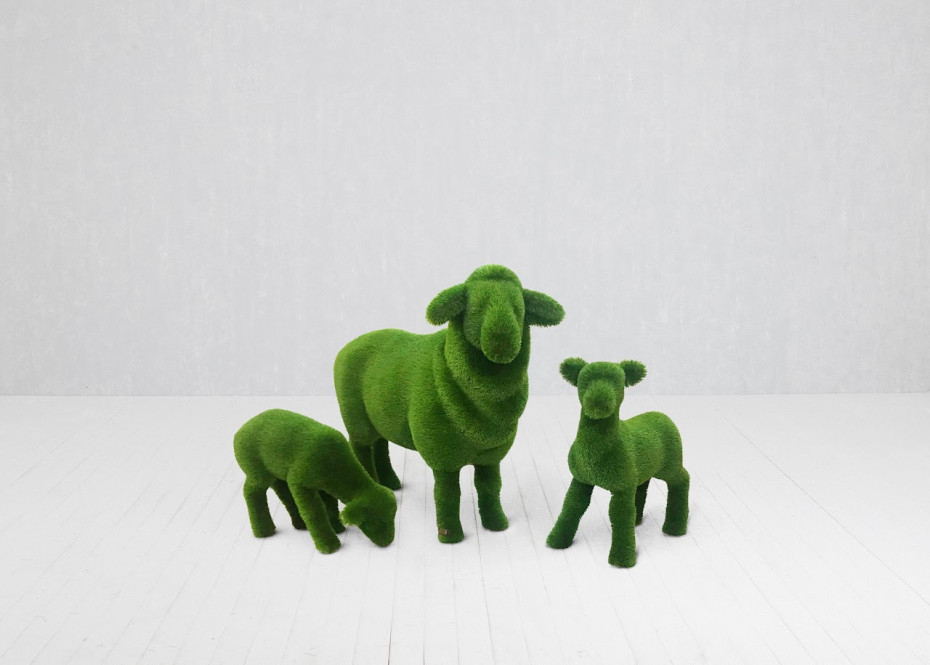 Topiary sheep garden statues made of artificial grass, set of 3 artificial grass sheep