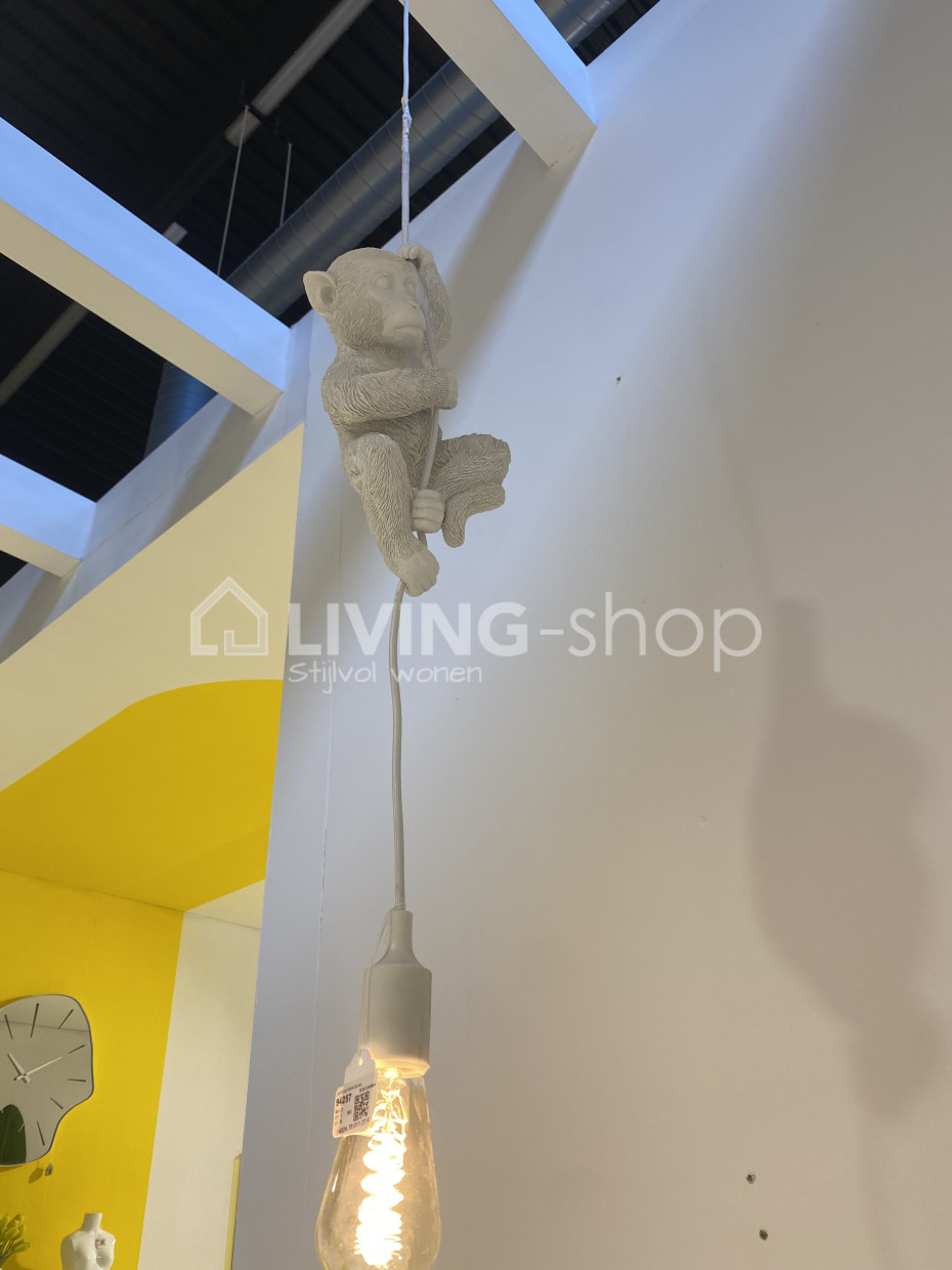 Singe lampe suspendue pour enfants pour la chambre des enfants de J-Line. Vous pouvez choisir entre une lampe suspendue singe blanc ou noir