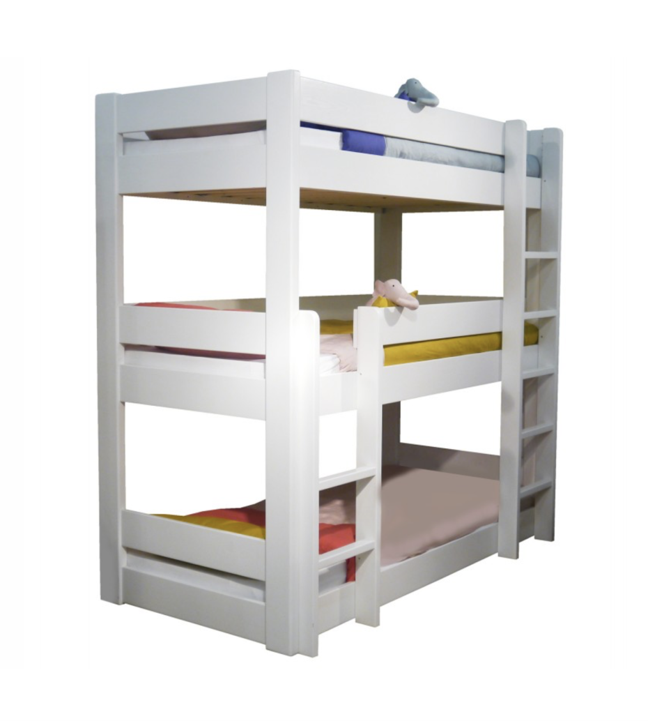 Choisissez parmi pas moins de 26 coloris pour votre lit mezzanine 3 couchages ! Ce lit superposé convient aux matelas d'une largeur de 90 cm, (également disponible en version plus étroite de 80 cm au même prix) Matière : pin massif lisse laqué, dont le grain et les lignes naturelles du bois restent visibles.