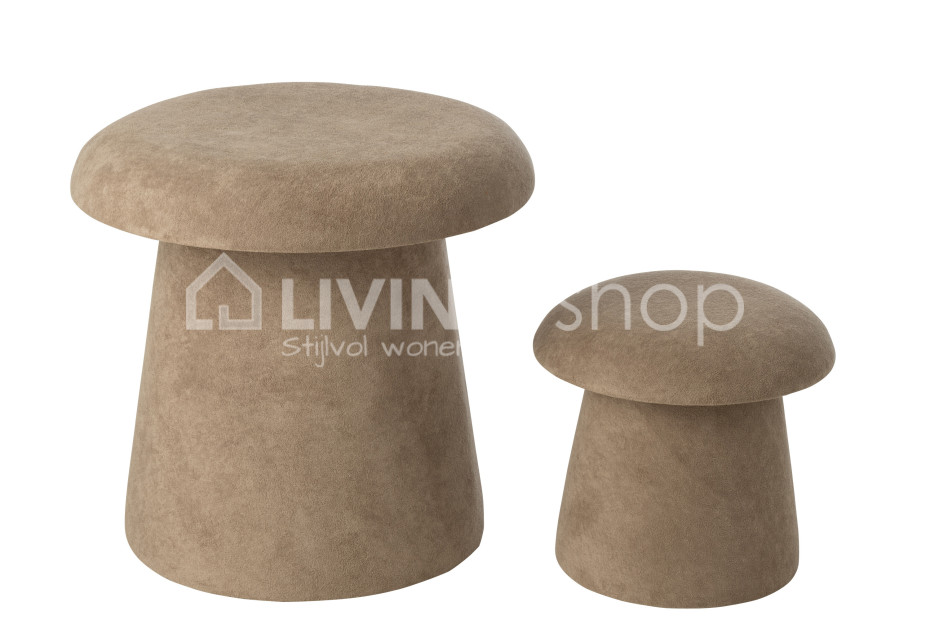 Lot de 2 tabourets de rangement champignon de la marque belge d'intérieur et de décoration J-line Pleasure of Living