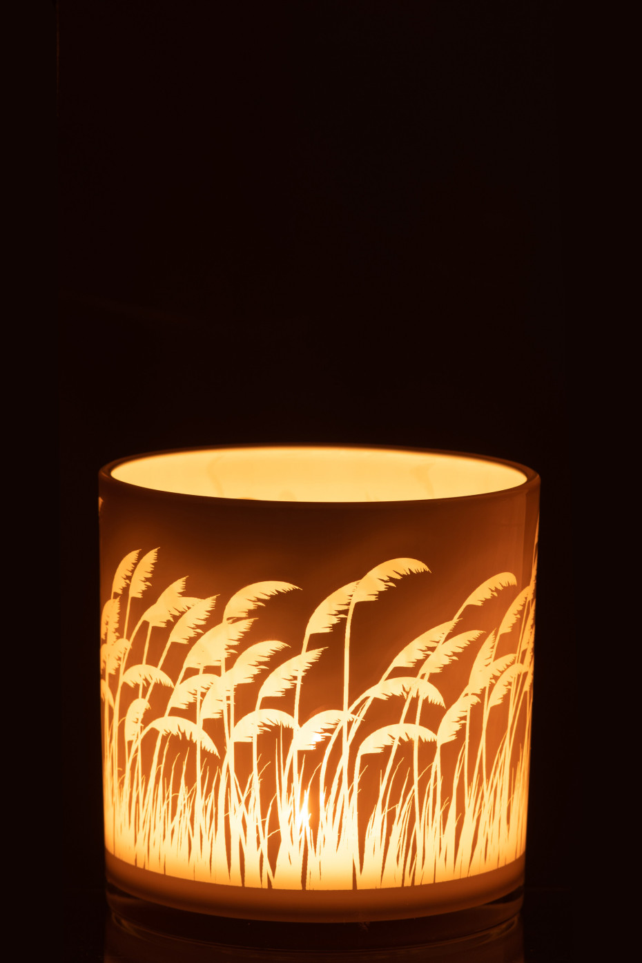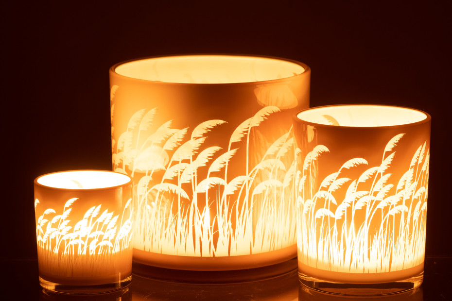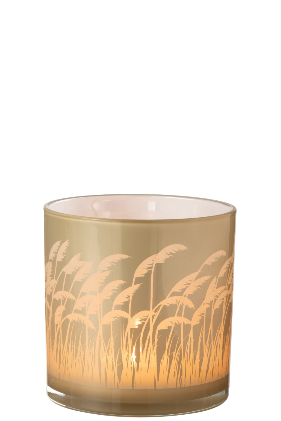 Photophore herbe de pampa beige blanc small 10x10xH12,5cm