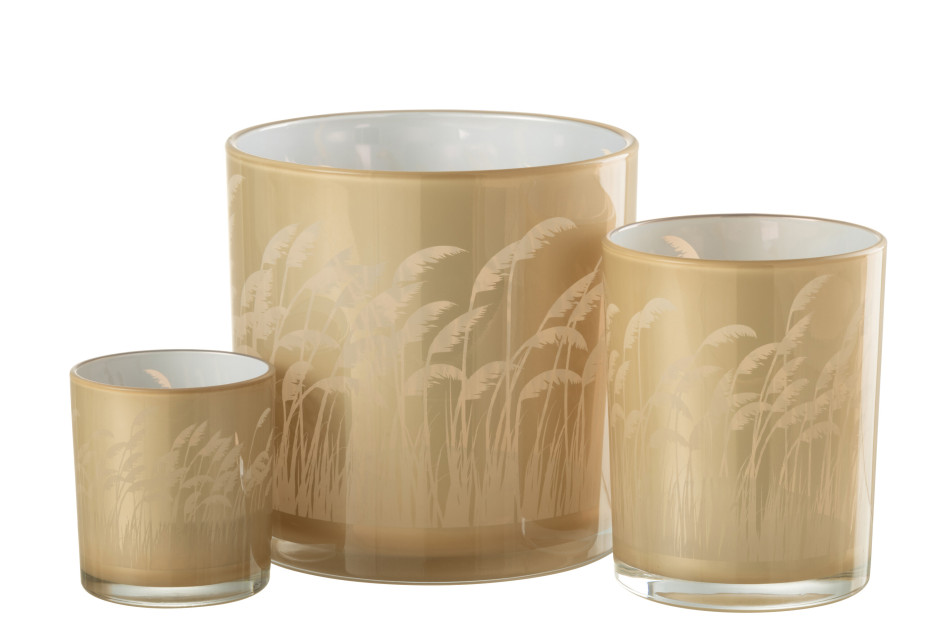 J-Line décoration photophores arbres en verre or ou herbe de pampa beige blanc