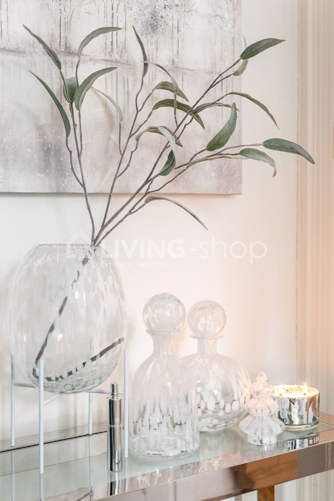 J-LINE Vase sur pied en verre moucheté Transparent / Blanc