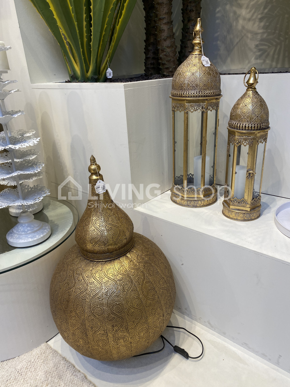 Lanternes orientales en métal doré J-Line, décorations et accessoires de maison de la marque belge J-Line, pour un art de vivre raffiné.