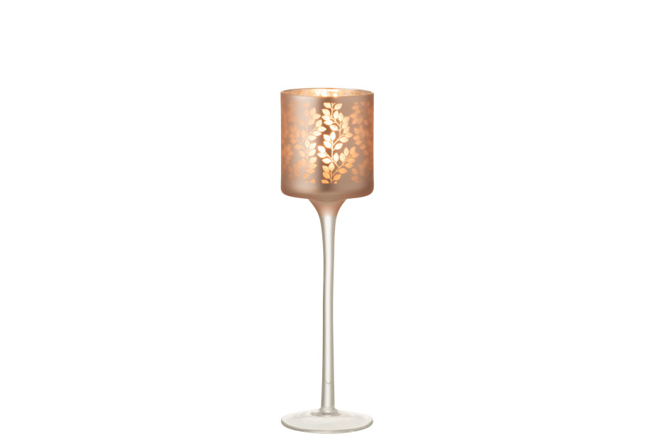 J-Line bougeoir verre avec motif feuilles / photophores sur pied motif feuilles rose clair et argent