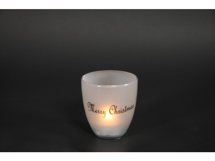 Photophore en verre de lait avec l'inscription "Merry Christmas"