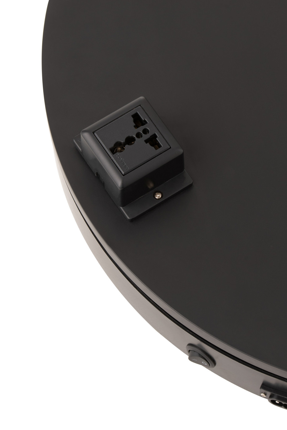 J-Line électrique plateau tournant rond noir avec prise pour prise européenne.