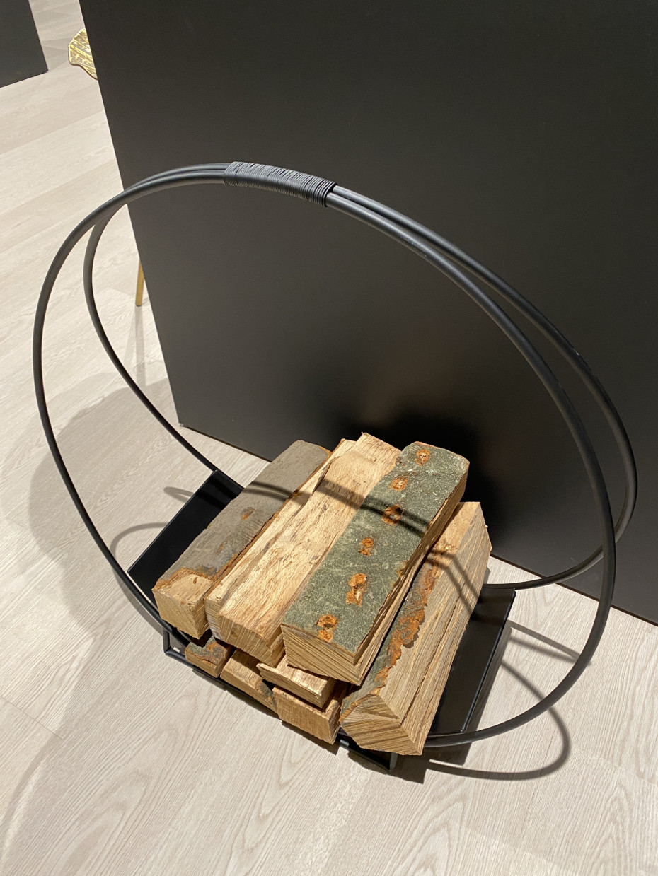 Dim porte-bûches rond métal noir 70x29xH71CM