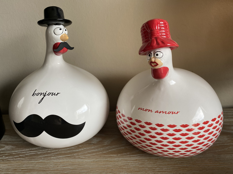 2 Céramique poules Bonjour Mon Amour de J-line, nouvelle collection poulets J Line.