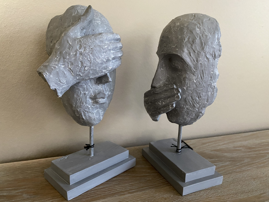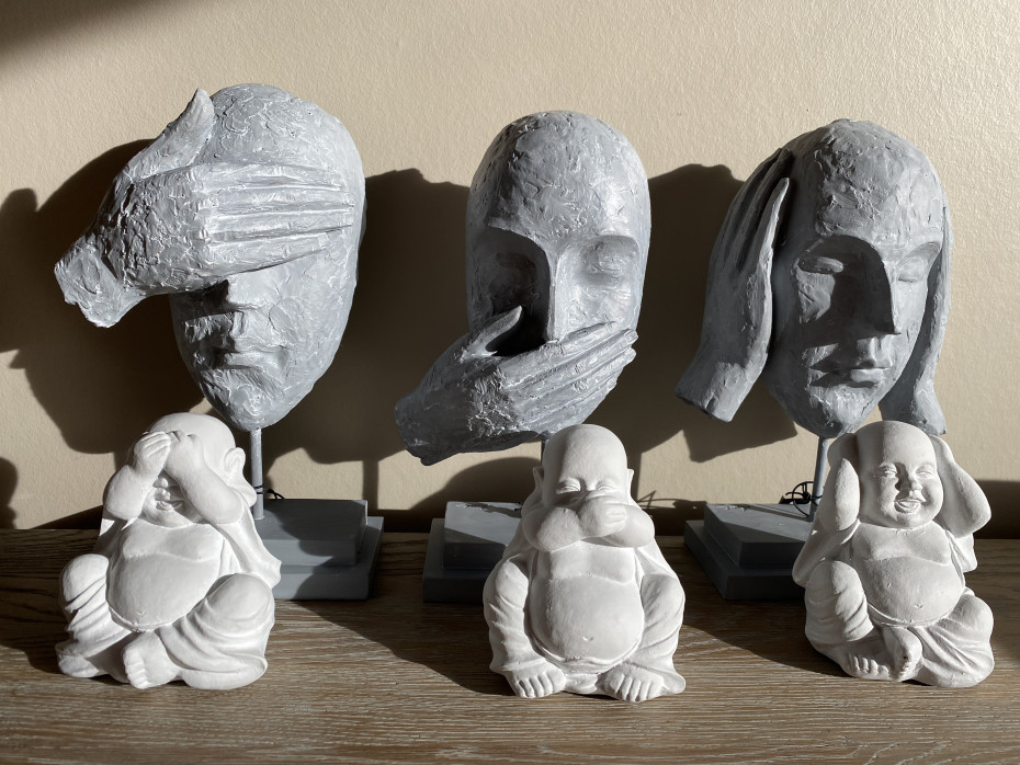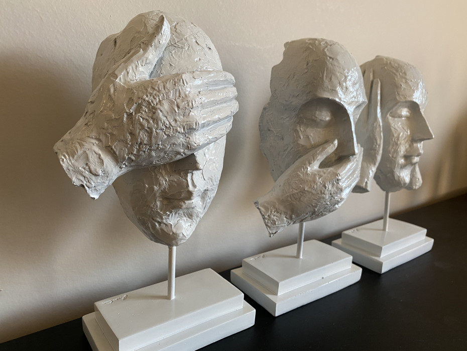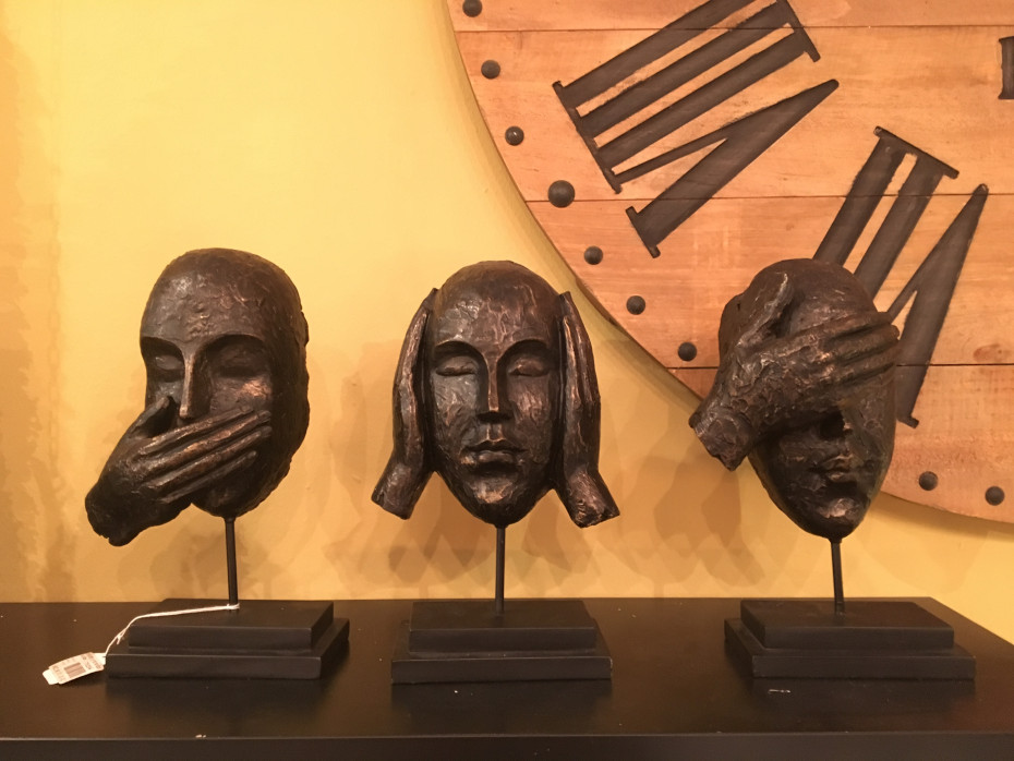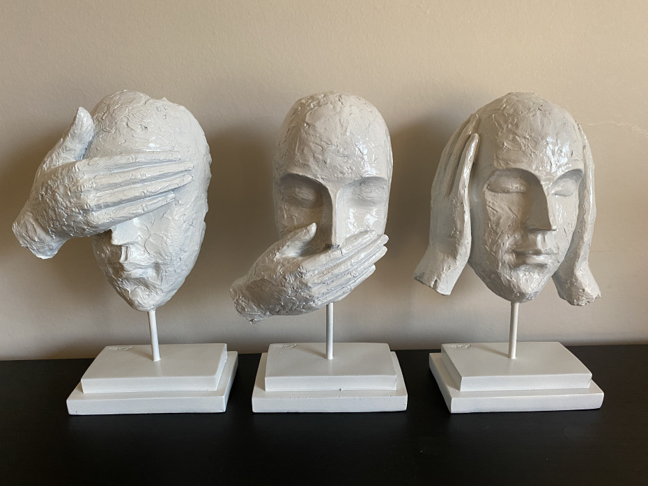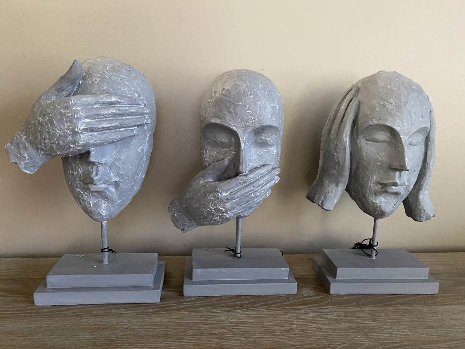 J Line visages statuettes je n'entends rien je ne vois rien je ne dis rien