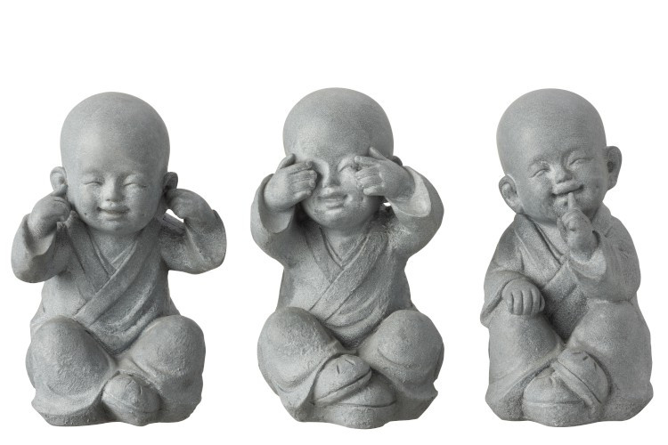 Statues de Bouddha Moines Entendre / voir / dire sculptures polyrésine gris J-Line dispo en 2 tailles: Large et Small :
