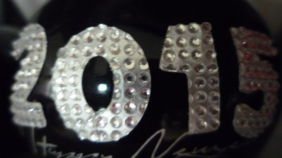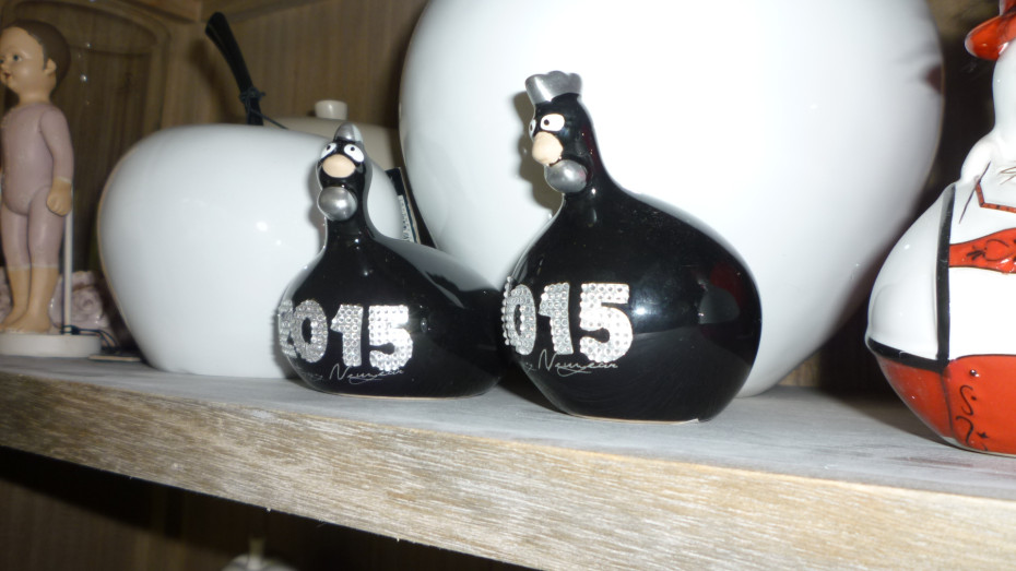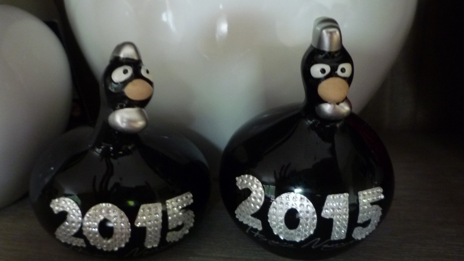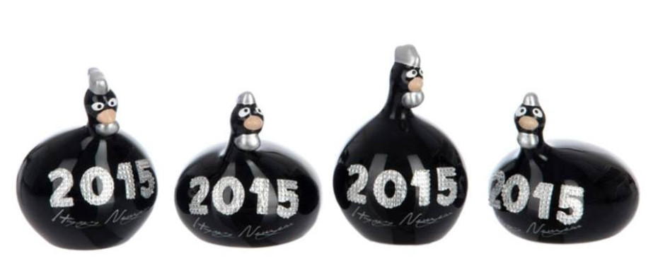 Les poulets sont tout noir avec les chiffres 2015 en argent et argent crête de coq.
