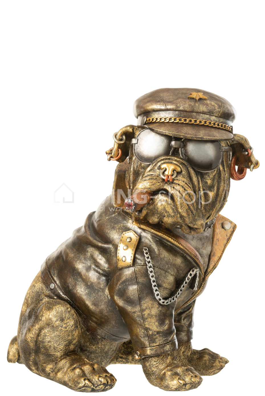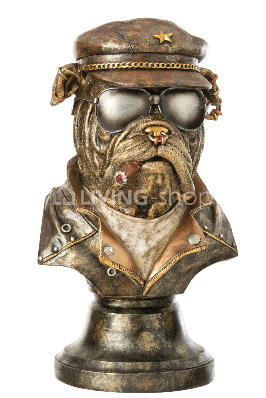 Buste de bouledogue J-Line avec cigare, casquette et lunettes de soleil