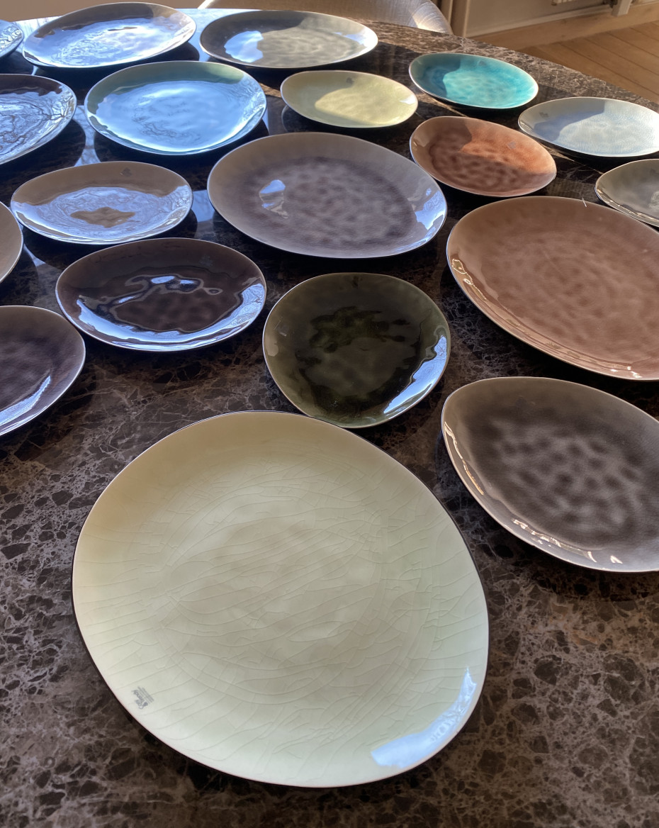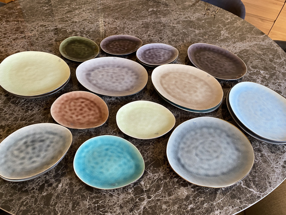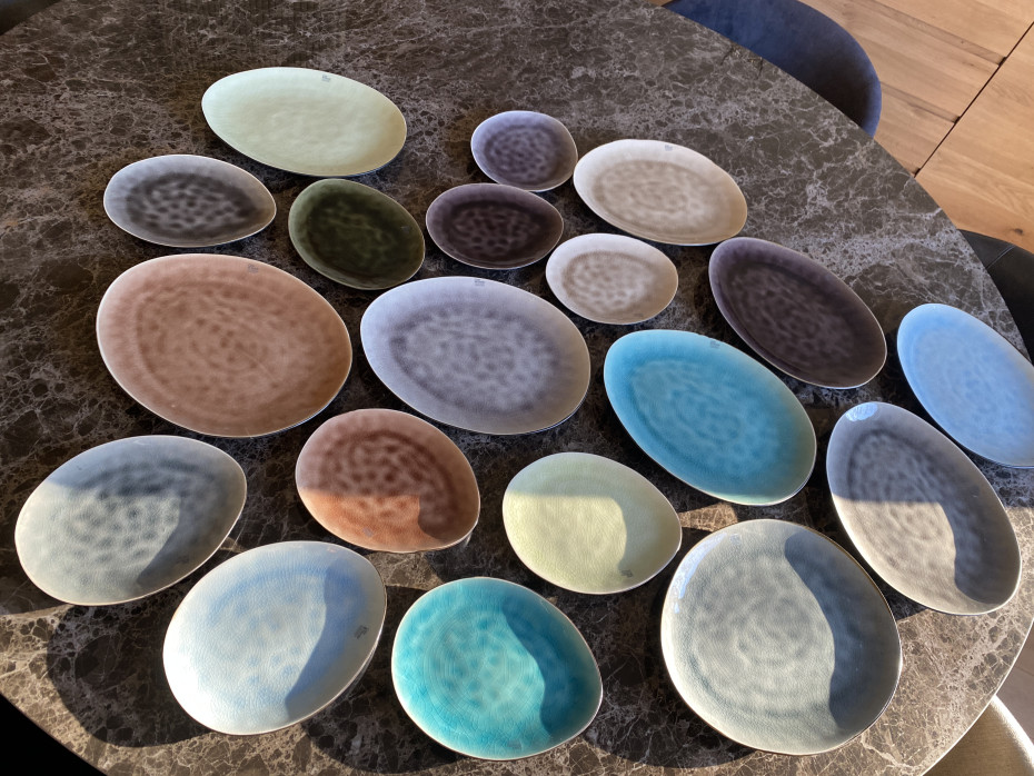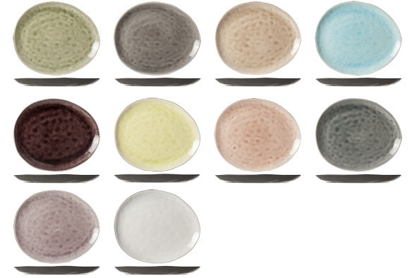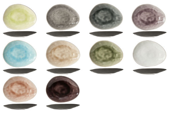 Assortiment de 10 assiettes ovales de couleurs différentes au design organique