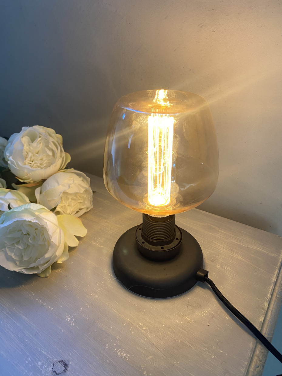 La lampe rétro ambre a un raccord E27 et vous pouvez facilement la graduer via votre interrupteur régulier dans 3 positions de gradation