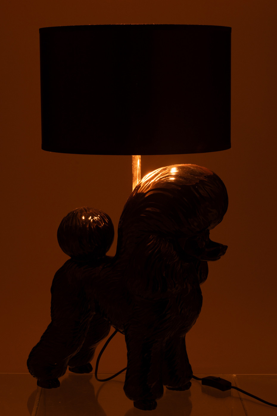 La lampe chien Caniche est en polyrésine avec un abat-jour en coton noir de J-line pleasure of living