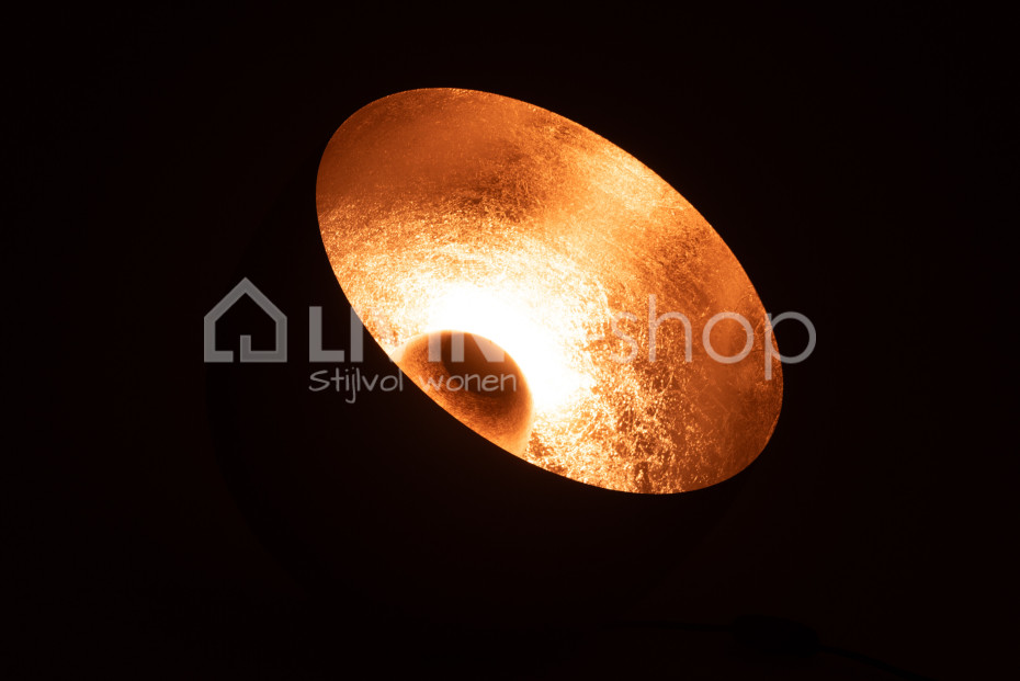 Lampe de table J-Line ronde en métal noir avec intérieur doré
