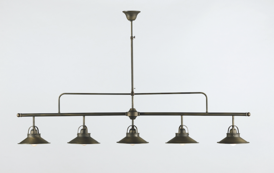Aussi disponible: le plus grand modèle de suspension Biliardo avec 5 points luminaires, dimensions L140CM x ø25 x H:min70-max110 CM