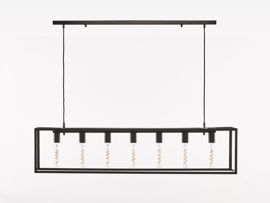 2 / Lampe suspendue Positano 7 lampes avec dimensions Hauteur max 95 cm x Longueur 125 cm x Largeur 15 cm x Profondeur 28 cm; Plafond Profil 102 cm x 5 cm