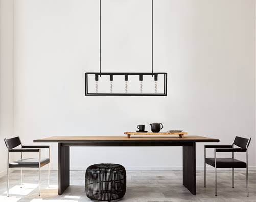 Lustre Positano est une lampe suspendue de style country moderne composée d'un cadre en métal noir, vous pouvez choisir parmi un lustre noir avec 5 points d'éclairage ou 7 points d'éclairage