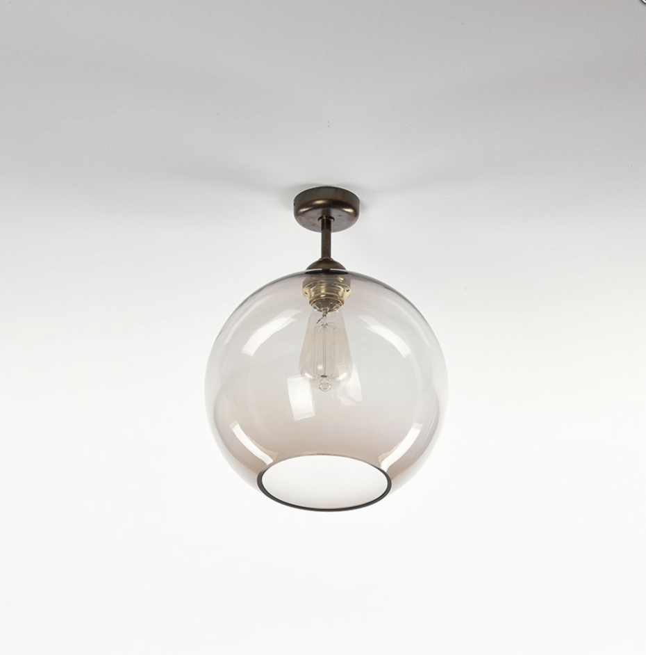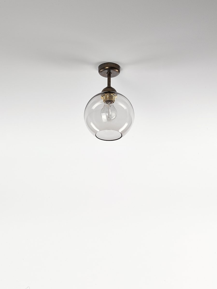 Plafonnier globe sphère Ottone avec globe en verre. Plafonnier globe en laiton avec verre soufflé sphérique.