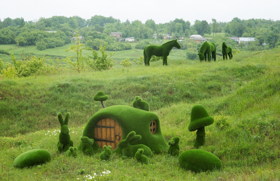 Ces sculptures de jardin combinent le savoir-faire d'arbustes et d'arbres coupés en une seule statue de jardin sans nécessiter d'entretien constant.