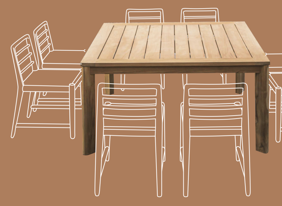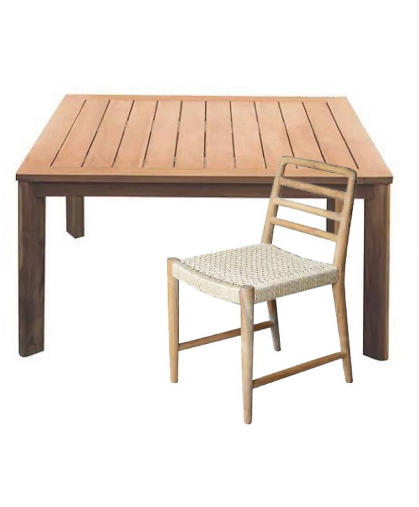 Dim Table de jardin scandinave en pleine teck 150x150xH75CM