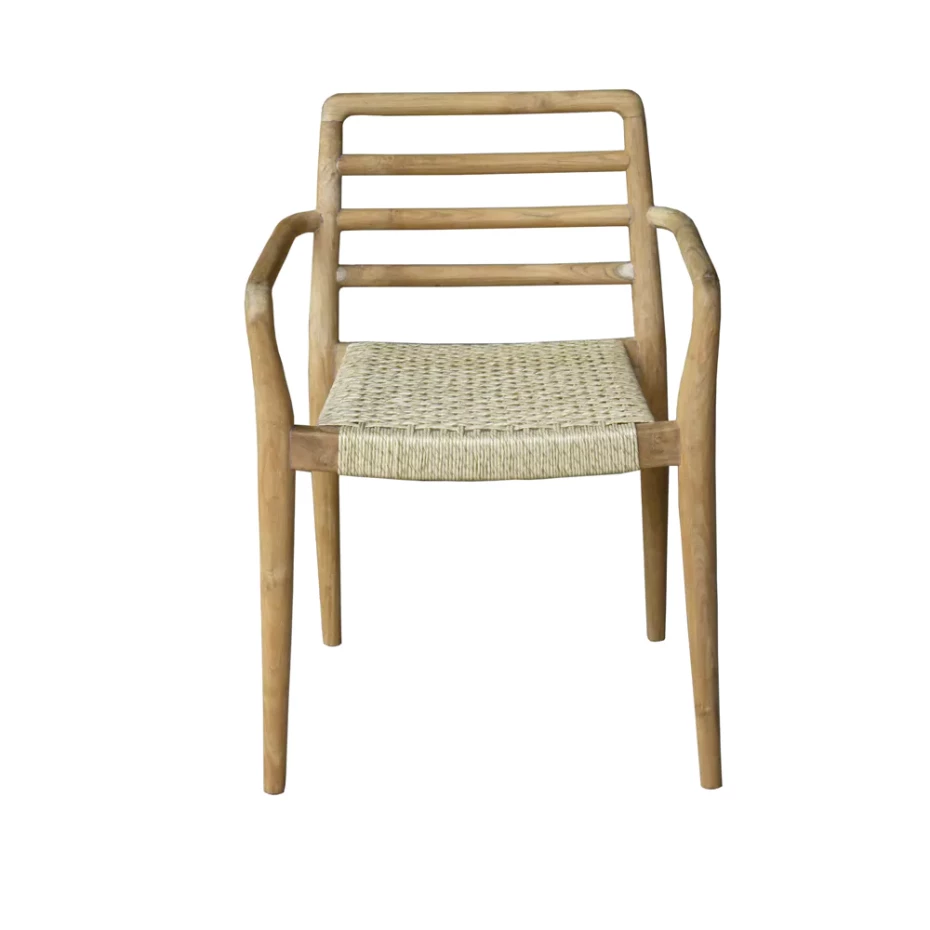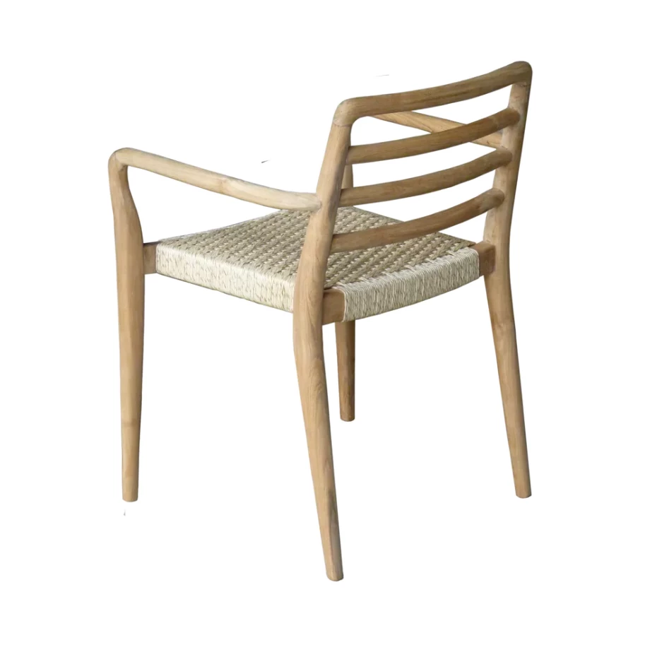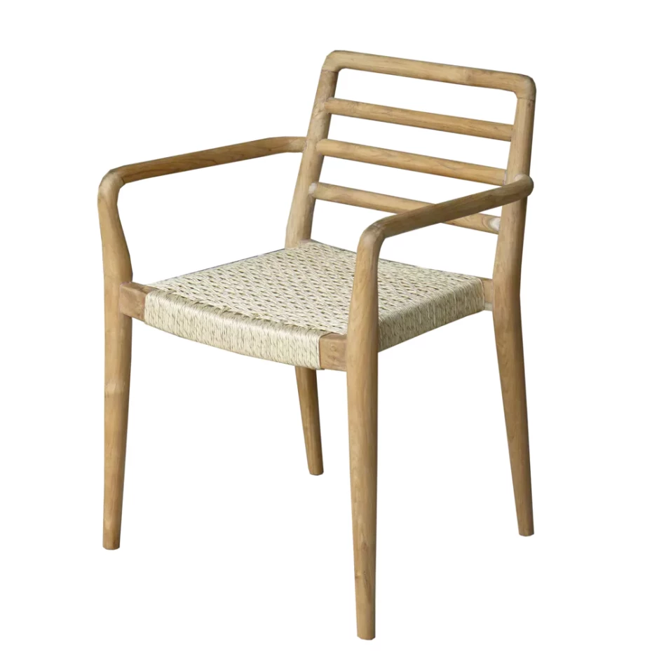 Ces chaises scandinaves en teck tissage Viro sont disponibles avec ou sans accoudoirs et sont empilables