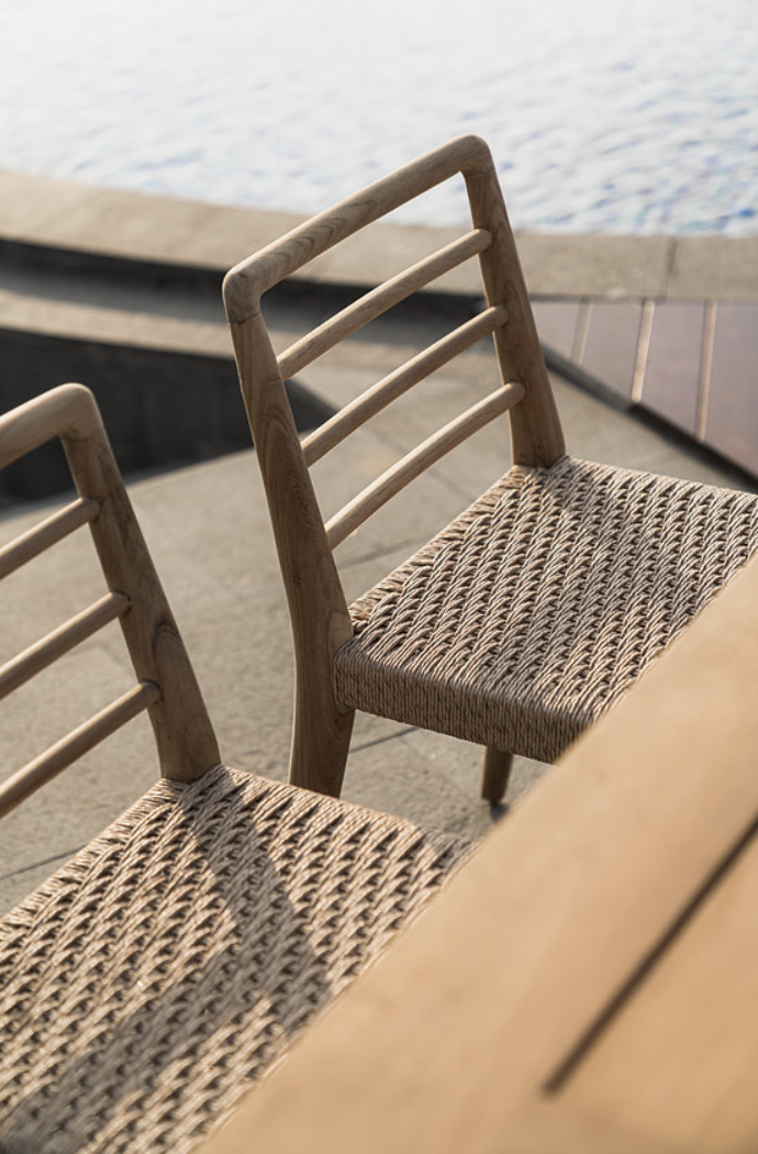 L'élégante structure en bois de teck associée à l'osier donne aux chaises Viro un look scandinave