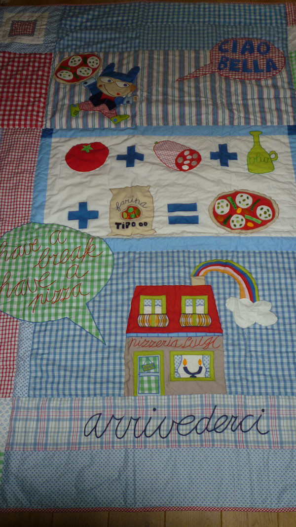 Belle qualité couette colorée et élégante pour les enfants. Couette Pizzeria Luigi de Room Seven, pour garçon ou une fille. Avec des applications étonnantes. Dimensions de couette 180x220 gaie, amusante avec des applications luigi et Pizzeria. Le fond est rayé. Haut degré de finition. De la collection de couettes pour enfants Room Seven pour la pépinière Profitez maintenant -30% !