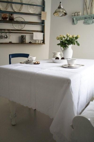 Nappe nostalgique en couleur blanc en 100% coton avec des bords crochet belles.