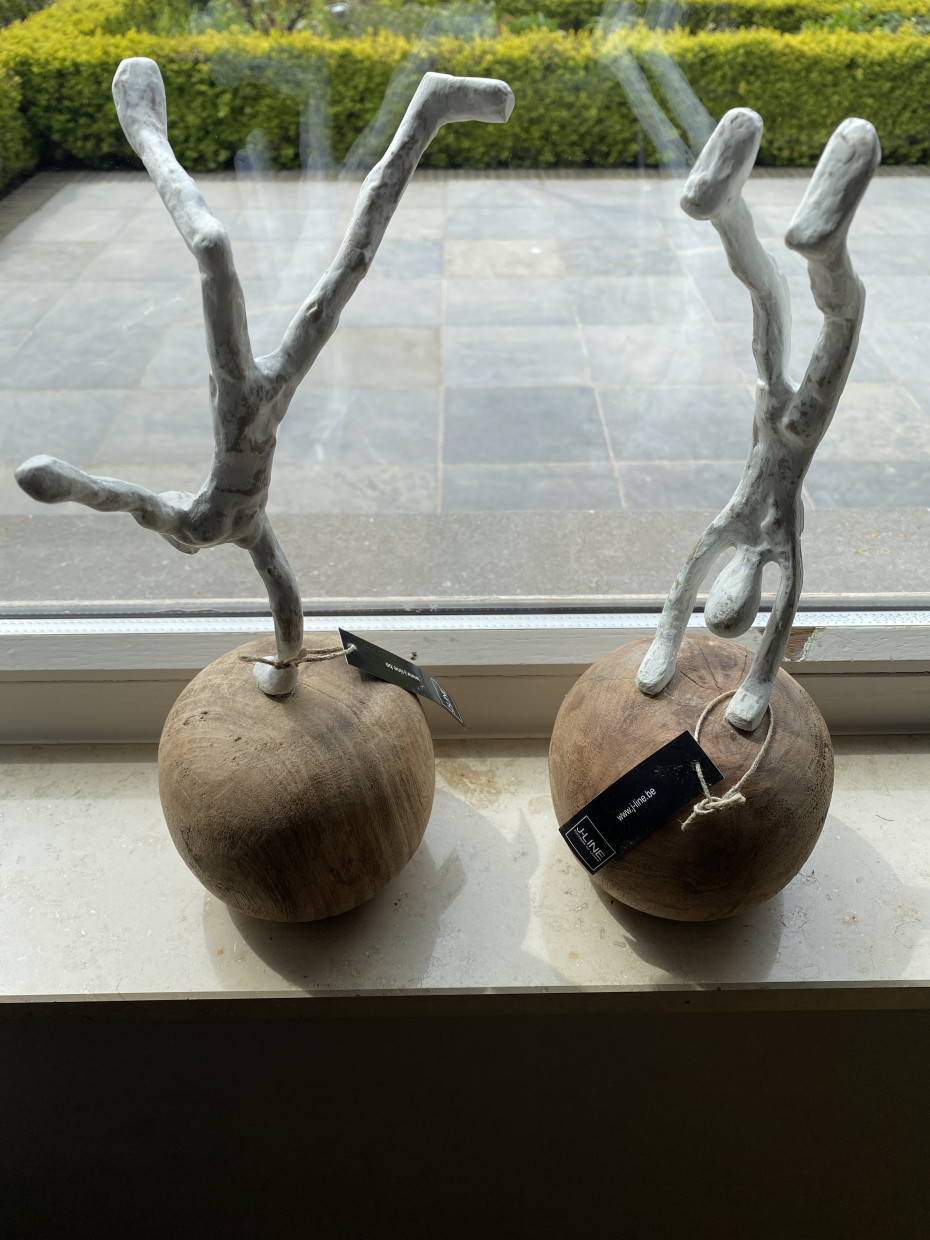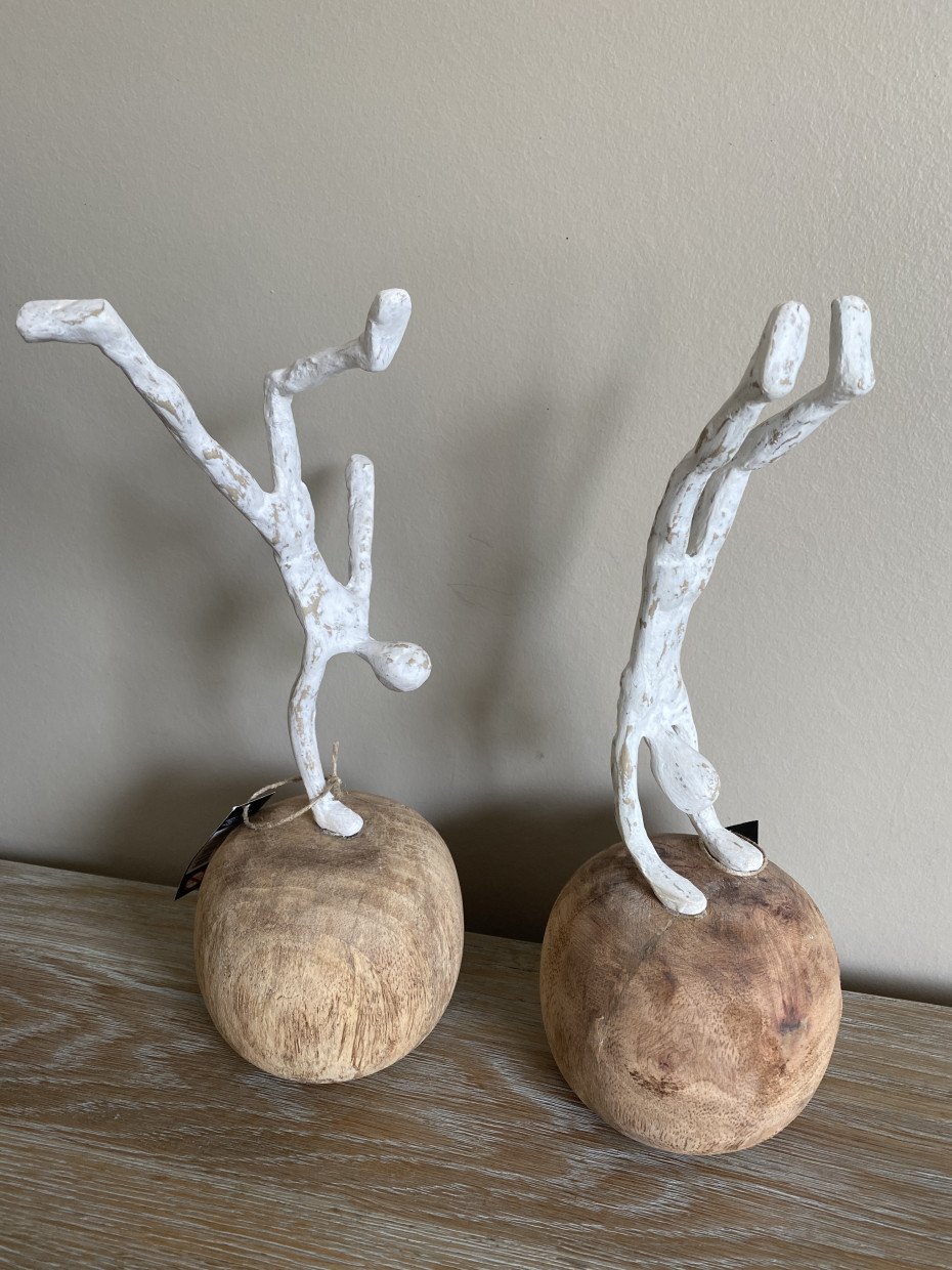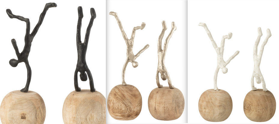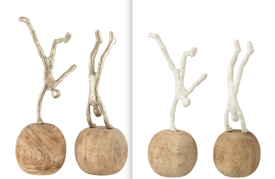 Assortiment de 2 figurines statues J-line différentes sur boule en bois de mangue