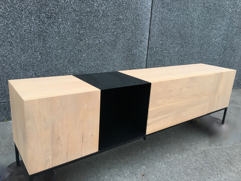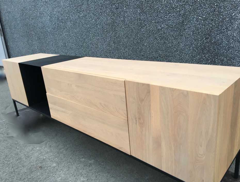 Vous pouvez commander le bahut en chêne naturel ou tout couleurs en placage de chêne avec un cadre en fer noir ou en fer doré (voir échantillons photos).