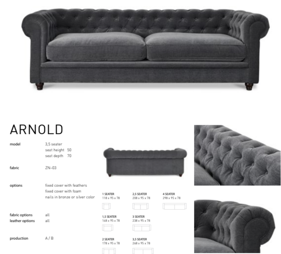 Canapé chesterfield Arnold est une magnifique Canapé Arnold avec boutons de Chesterfield. Le canapé Arnold Chesterfield est disponible en différents tissus et couleurs, et même en vrai cuir vintage.