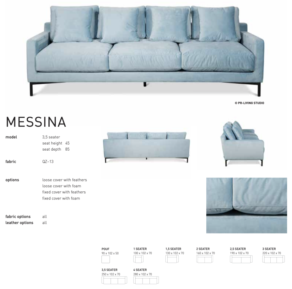 PR Living Canapé rural et confortable Messina dans différentes couleurs de tissus de qualité et de cuir disponibles; votre style de salon de tissu ou de cuir dans la couleur de choix, téléchargez le catalogue ici