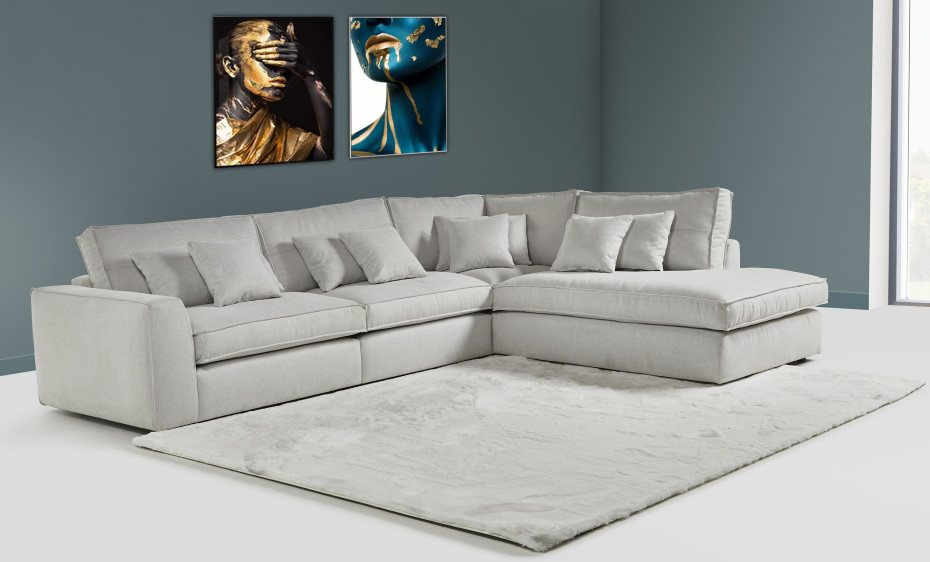 Le nouveau canapé modulaire d'angle Capizzi est disponible en plusieurs versions, chaise longue, entretoises, sièges d'angle doubles et ottoman.