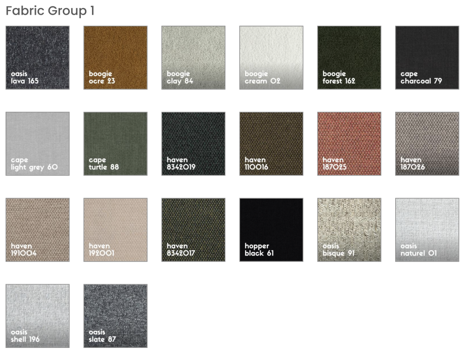 Lien détail officiel HAPY flex chairs avec tout couleurs tissus et toutes les couleurs disponibles pour les pieds de chaise en métal ou en chêne