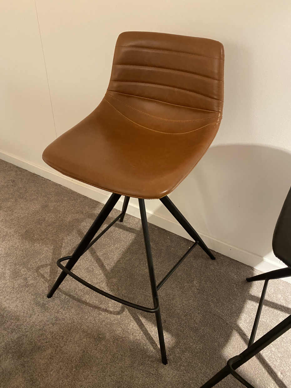 Chaises de bar de comptoir non rotatives en cuir PU noir ou camel