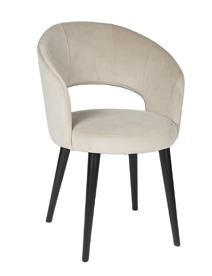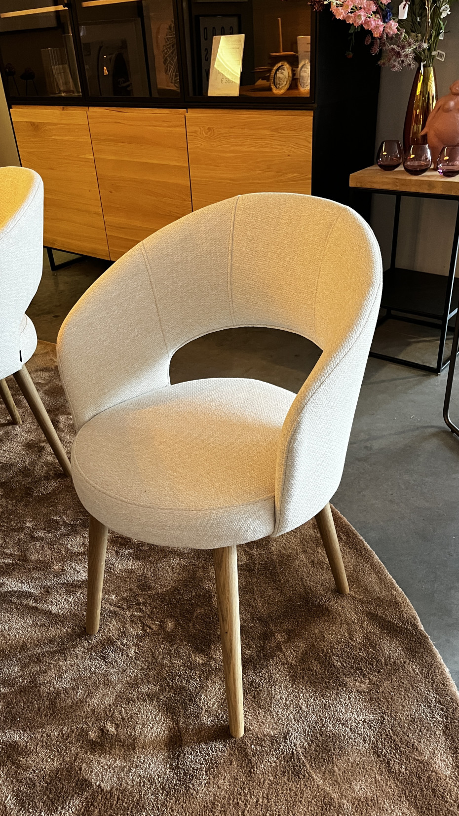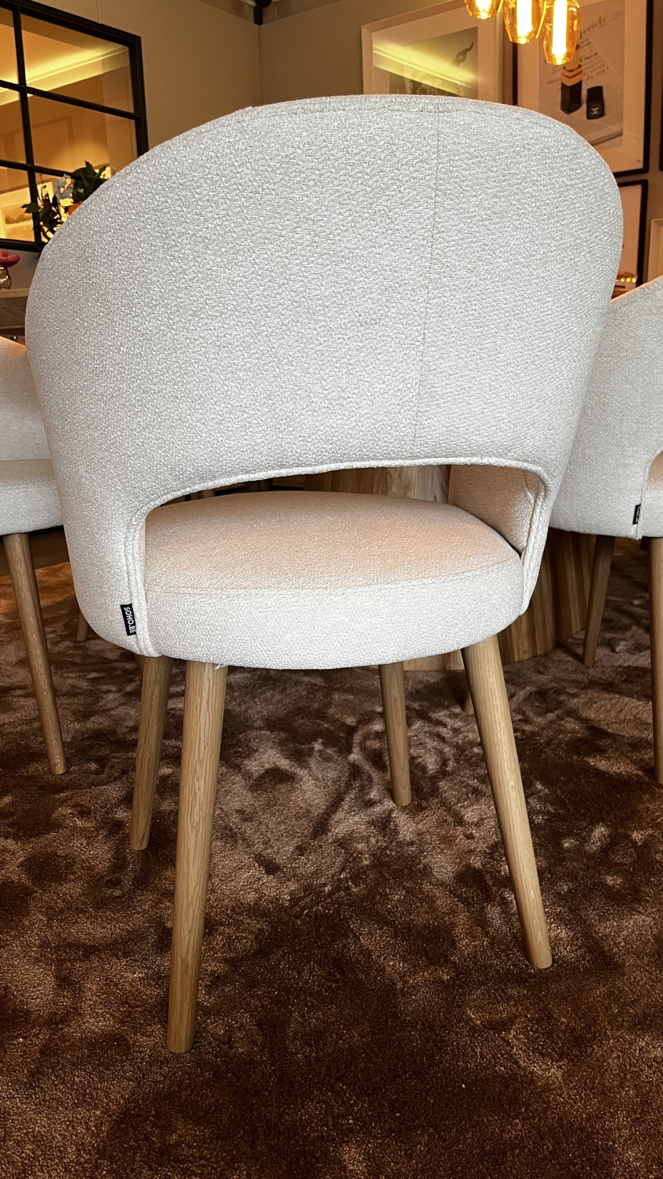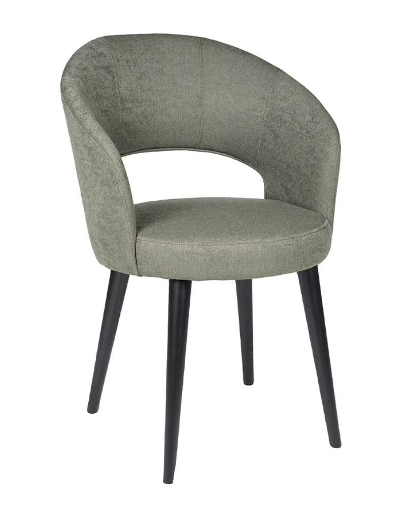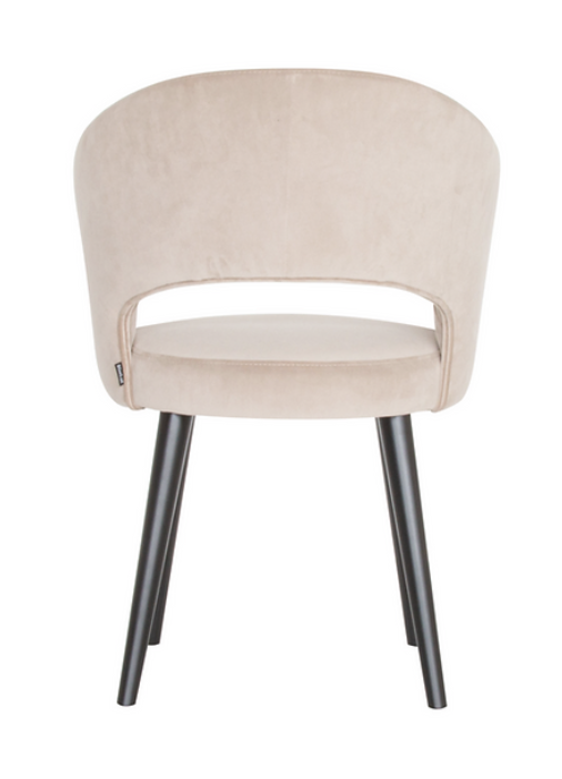 Les pieds ronds en bois des chaises confort Amra sont également disponibles en chêne naturel ou en bois noir
