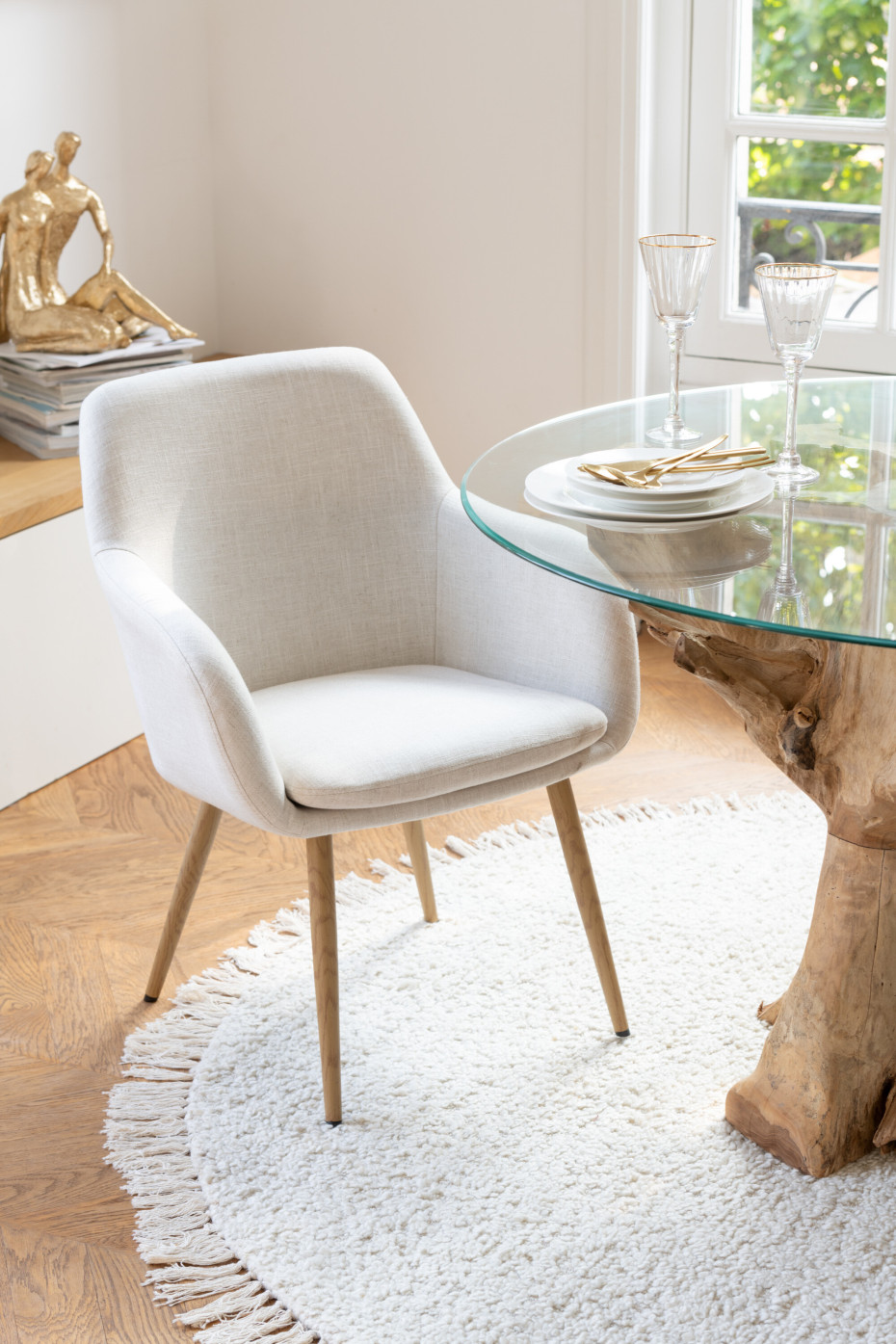 Les chaises de salle à manger Miles sont fabriquées en textile ivoire ou gris et ont des pieds de chaise en bois naturel