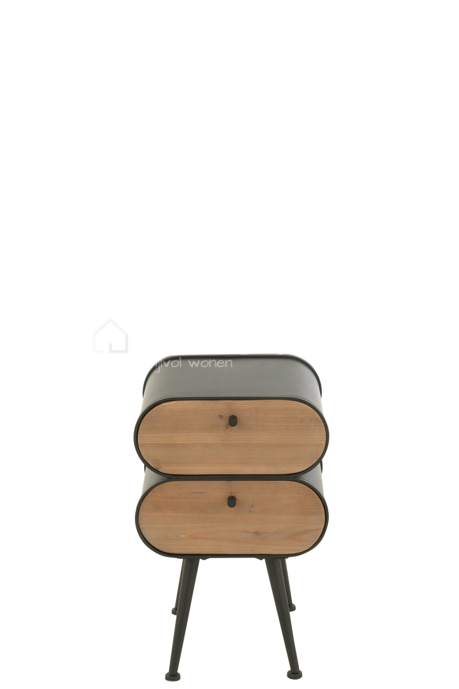 Table de chevet industrielle J-Line avec 2 tiroirs et 4 pieds en métal