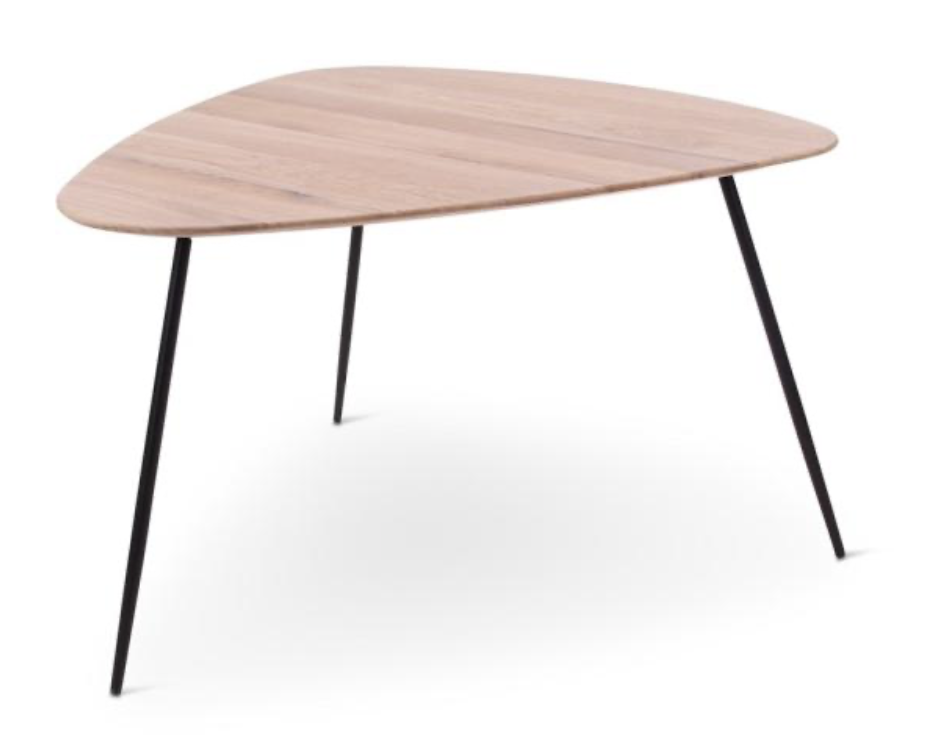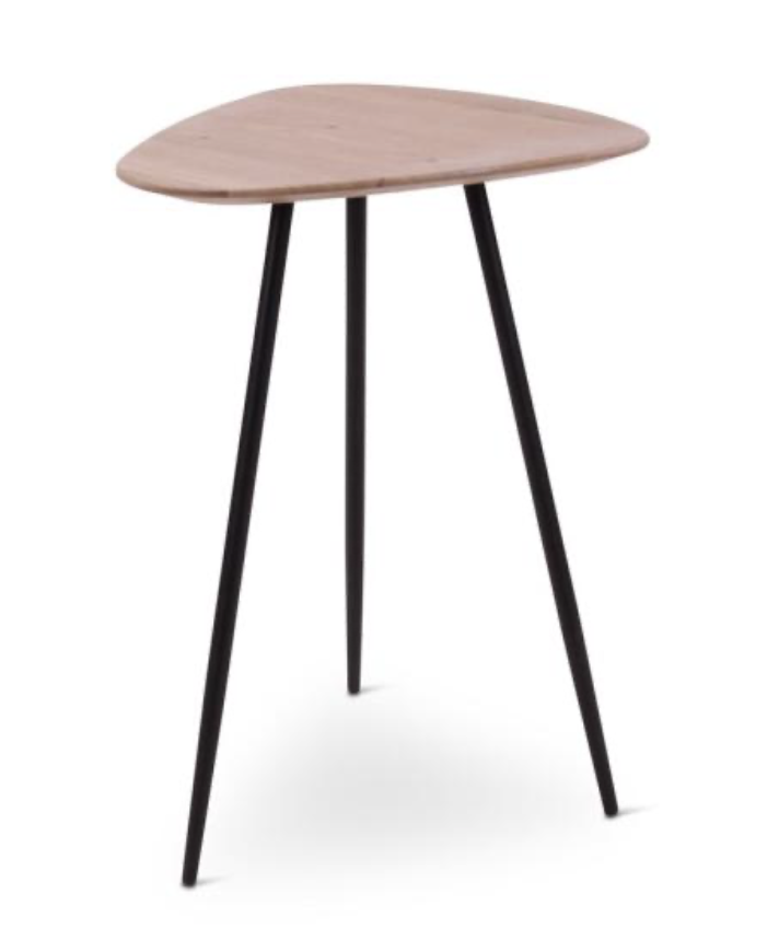 Tables d'appoint Coda pour le confort près du canapé, en forme de triangle avec de fins pieds de table en métal noir