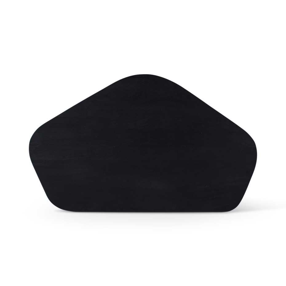 La table basse moderne Kato en forme de triangle organiquement arrondi est entièrement réalisée en bois d'acacia