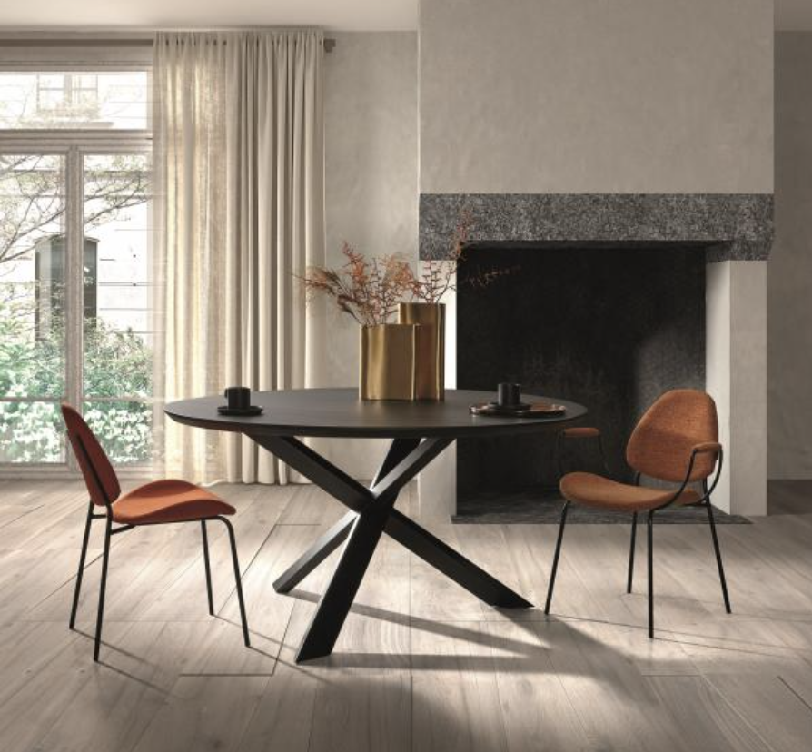 Table à manger ronde moderne avec pied de table croisé métal de Castle Line tables flex collection